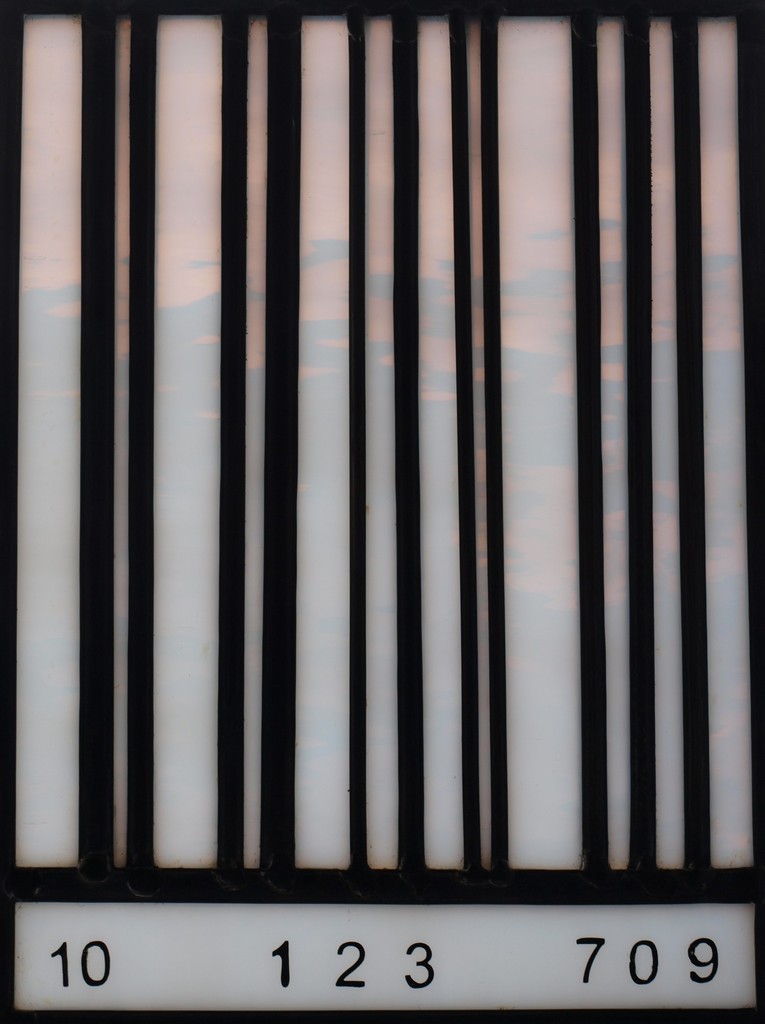 Streepjescode van wit opaalglas en diverse looddiktes.