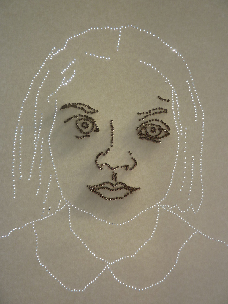 Door mijn ogen gezien, is de tastbare wereld opgebouwd uit puntjes. Vele bewegende puntjes, in verschillende dichtheid, veroorzaken vorm, maar veel minder vast dan je tastend zou voelen. In mijn werk communiceer ik deze waarneming.