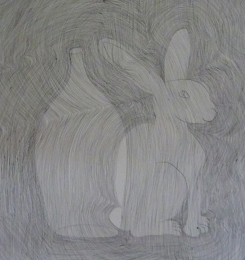 Door mijn ogen gezien, is de tastbare wereld opgebouwd uit puntjes. Vele bewegende puntjes, in verschillende dichtheid, veroorzaken vorm, maar veel minder vast dan je tastend zou voelen. In mijn werk communiceer ik deze waarneming.