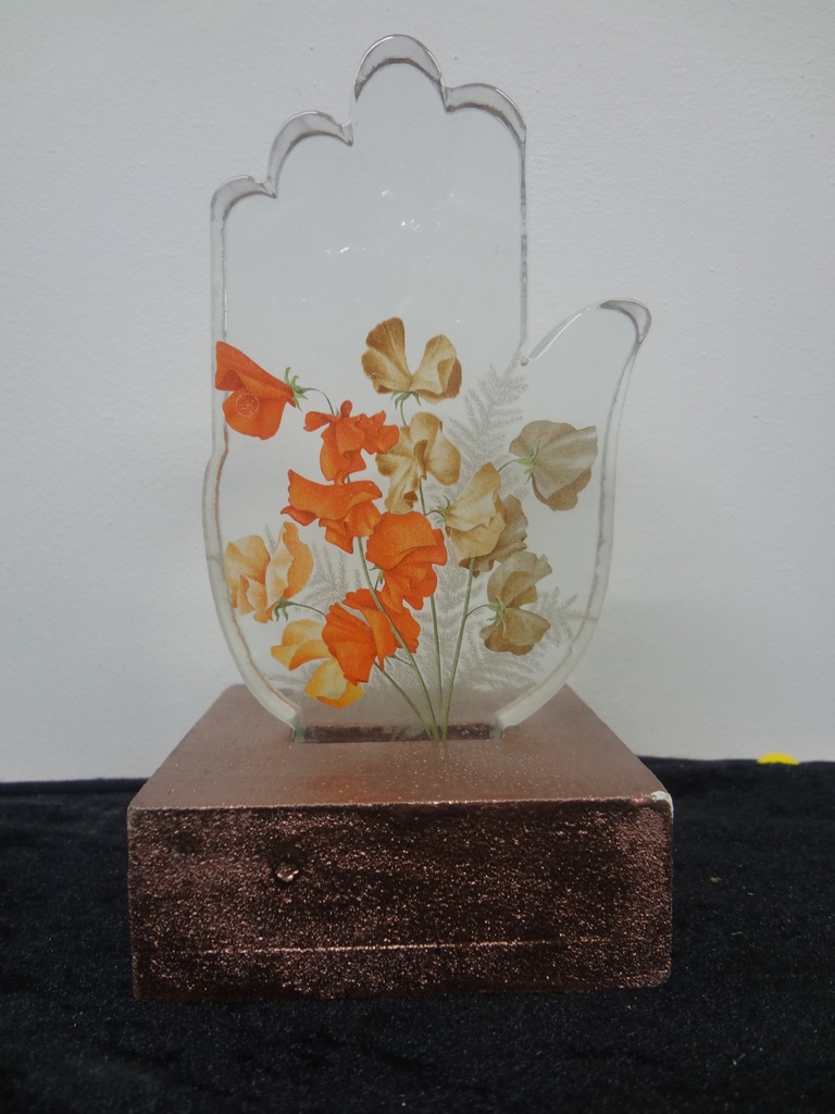 Specialized in glass fusion and screen printing, he refined his skills in warm glass shaping in Belgium. His work is characterized by intricate designs using 'track fusion' and glass casting