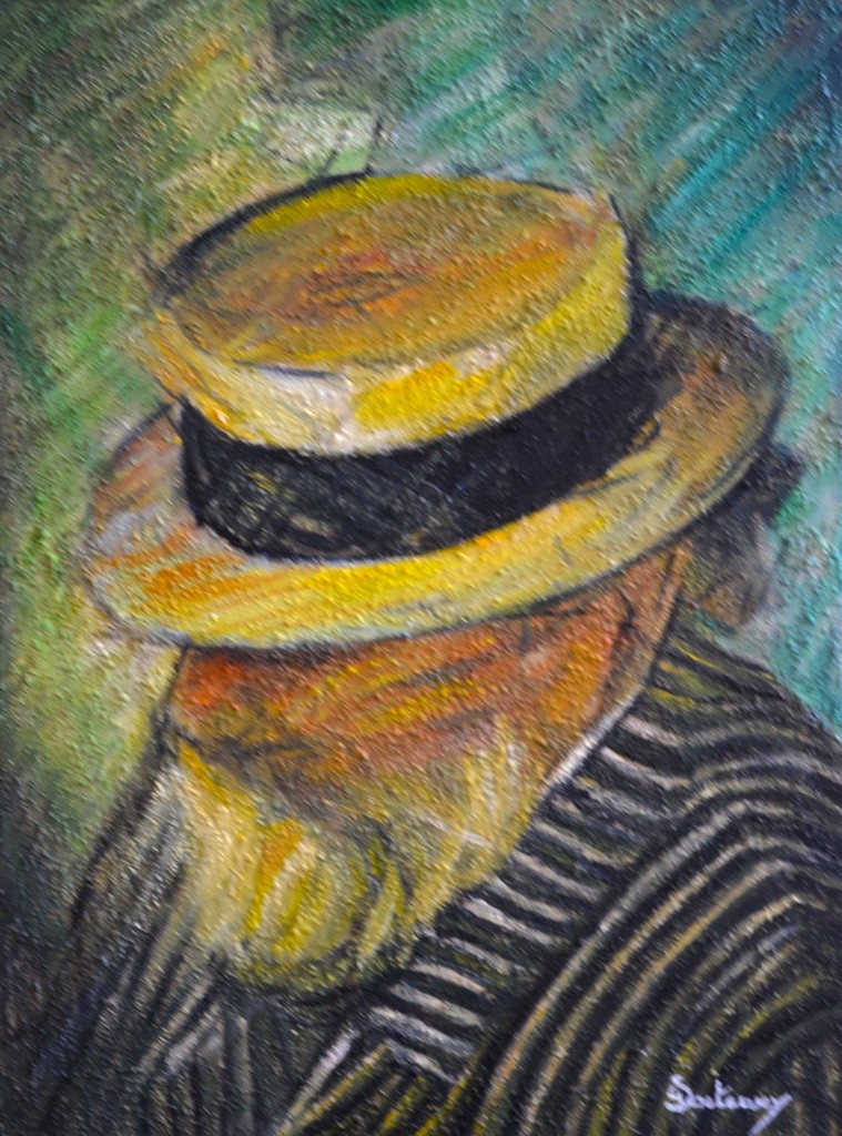 Hoed Retro Baard Geel Groen Olieverf Figuur