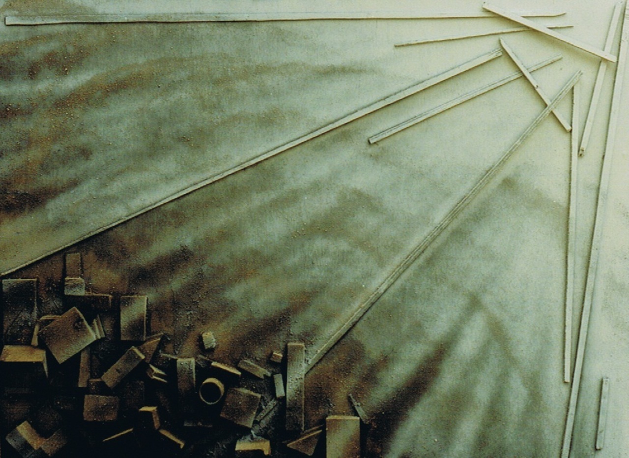 De evolutiecomponenten; Ruimte, Licht en Materie. Houten sculptuur. 116 x 85 cm. Af depot € 9680,- inclusief 21 % BTW. Stichting Inderdaad is verkopende partij. Kvk 08164927 3971CC 3 Driebergen