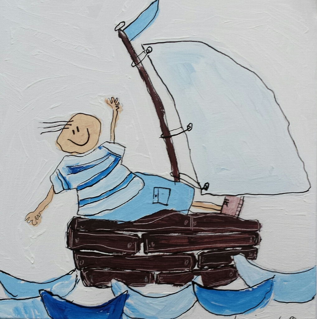 landschappen. Poëtisch maar ook vervreemdend. Met humor en onverwachte wendingen. De kern van de compositie wordt gevormd door grote vormen met een krachtige uitstraling , toegevoegd worden kleine details waardoor je al lopend door het schilderlandschap stuit op onverwachte ontdekkingen.