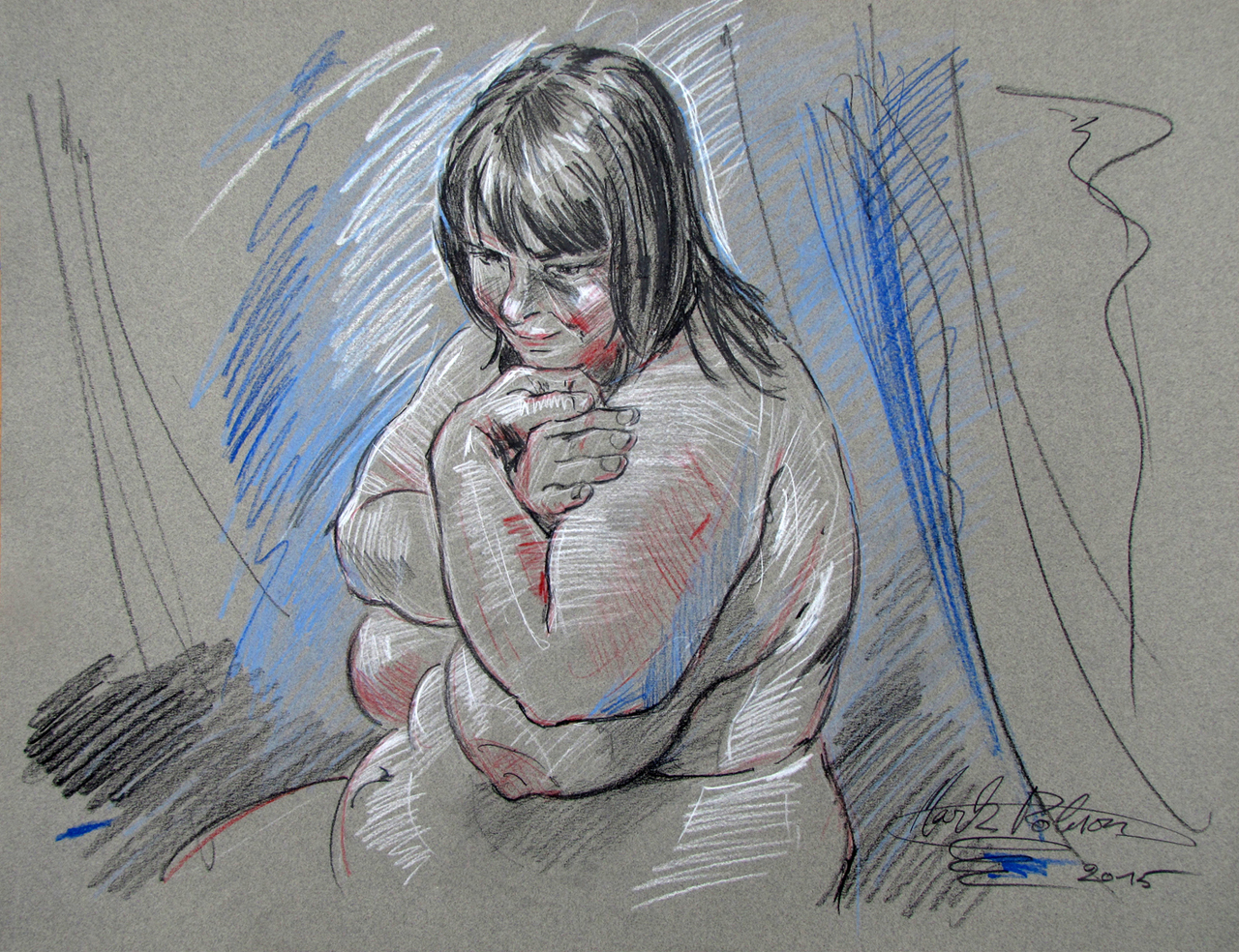 Model: Marieke Oldenburger - Zonnig weer in het atelier - Pastelpotlood op Cansonpapier