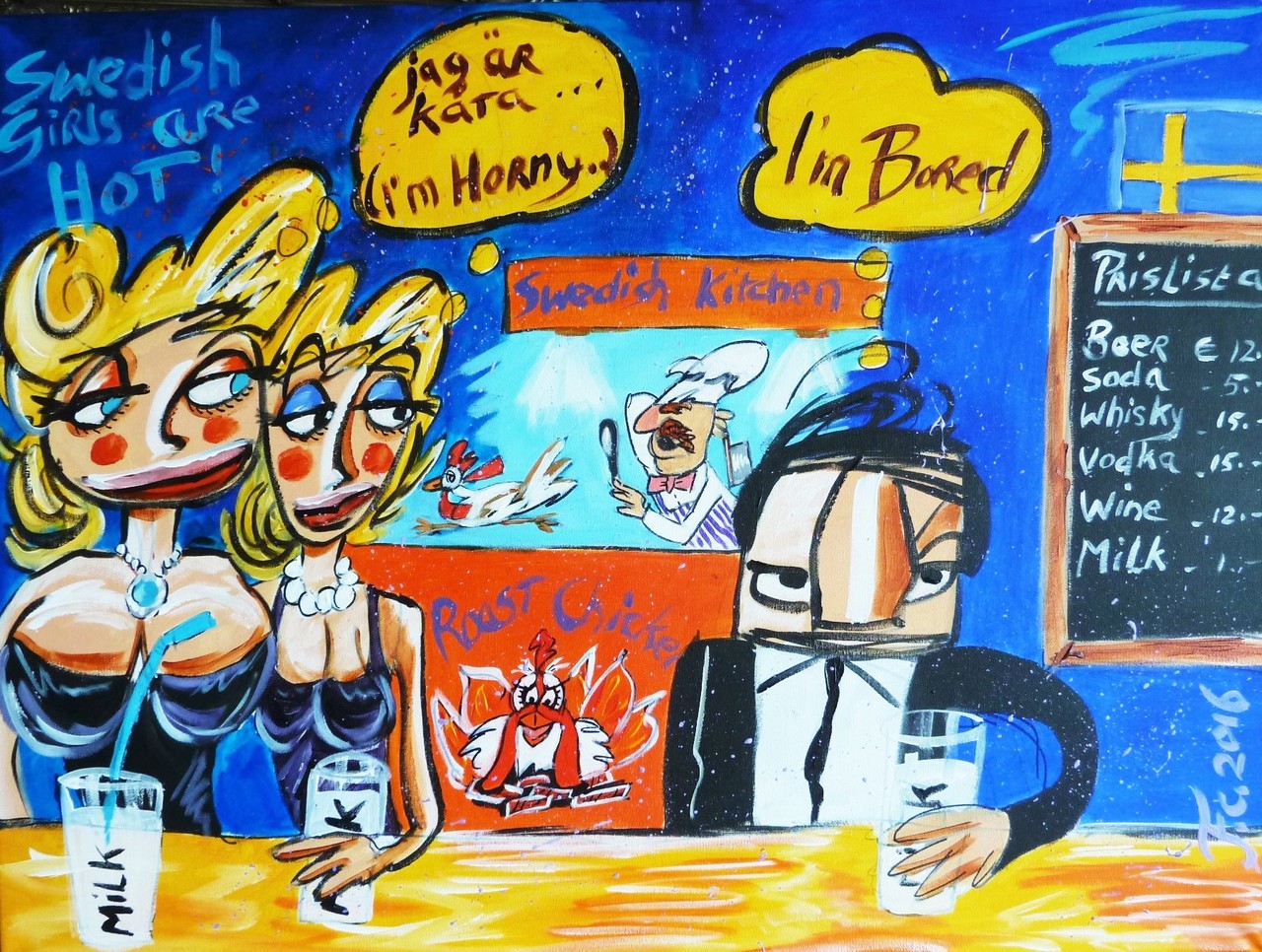 Neo popart. 'Swedish Girls' maakt onderdeel uit van de serie 'Landen".