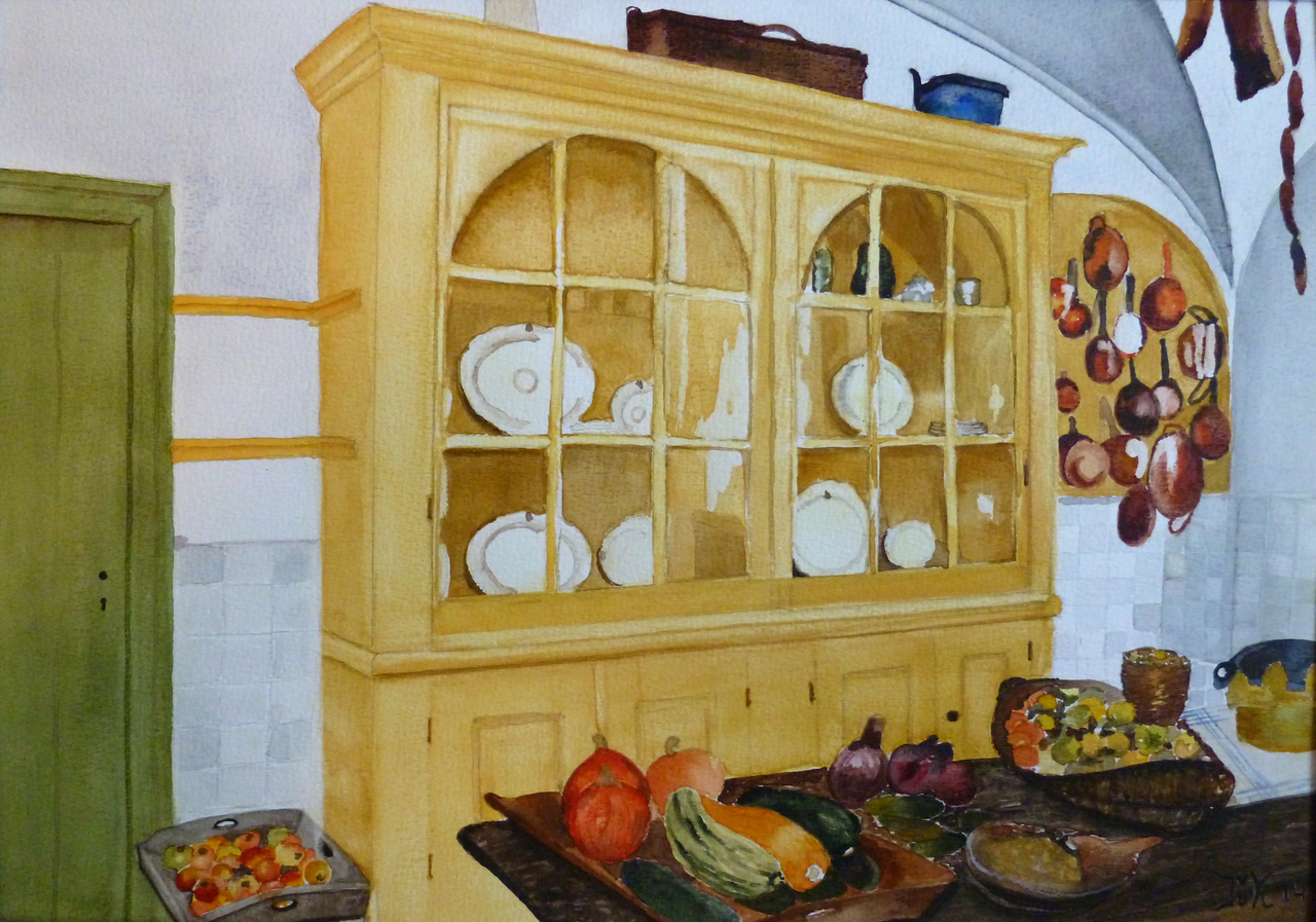 Groete keukenkast in de keuken van Kasteel Amerongen.
