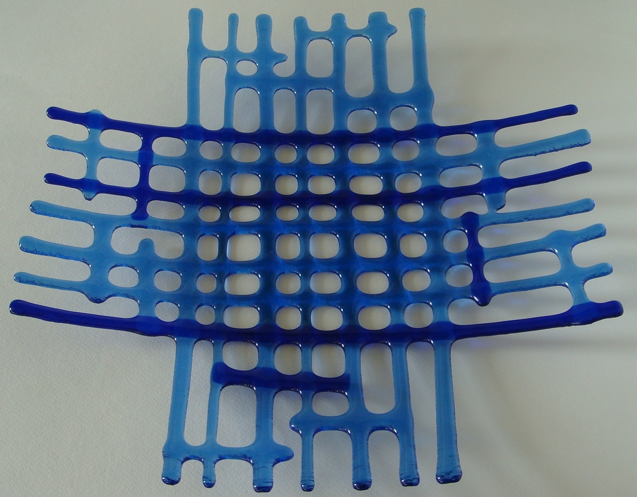 Glas Glaskunst Louky Loukyscheltema Scheltema Kobaltblauw Lichtblauw Schaal Gaten Bullseyeglass Cobaltblue Lightblue Dish Holes