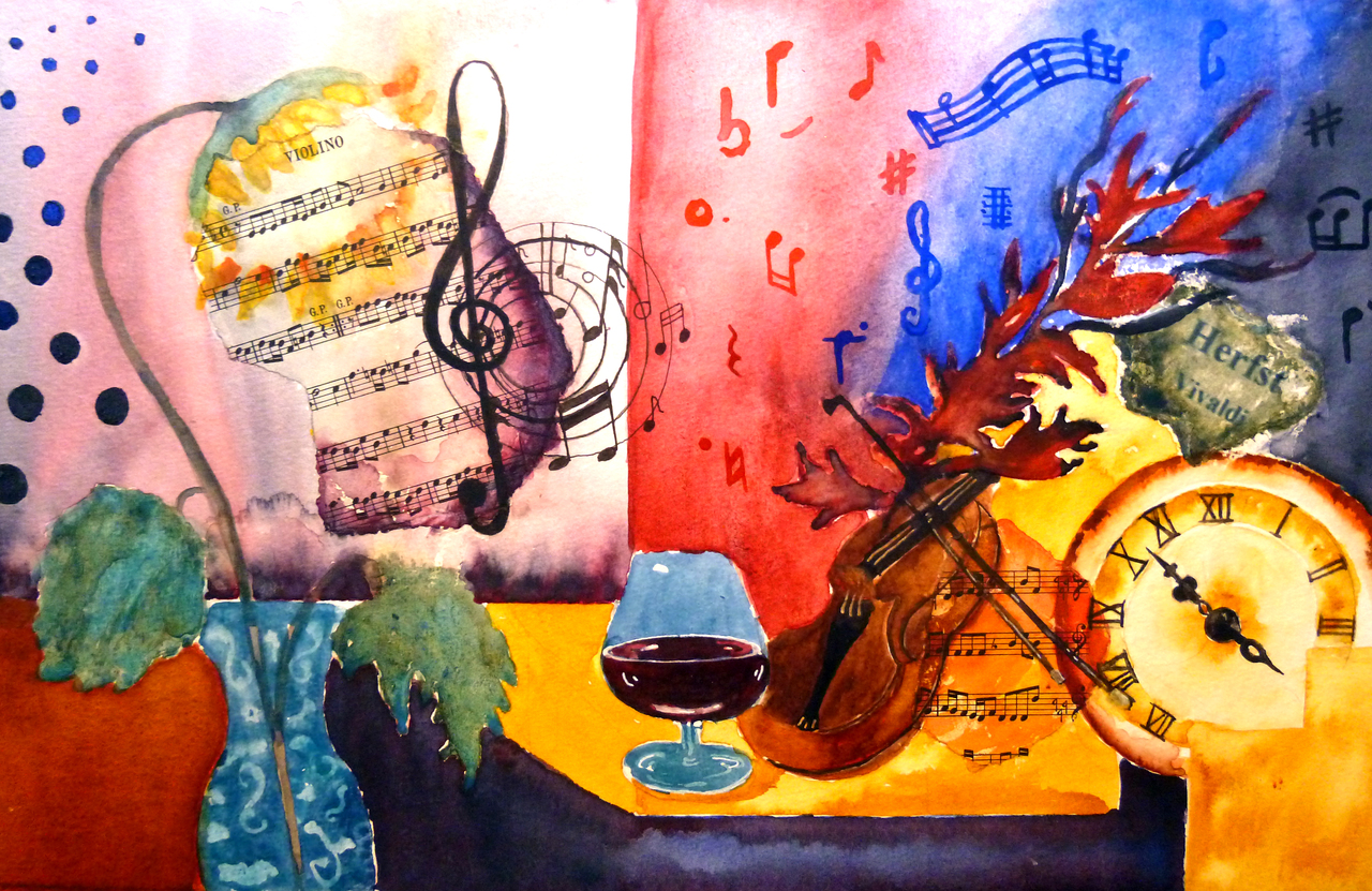 Van Aquarel Inclusief En Compositie Muziek Tijd Passe-partout