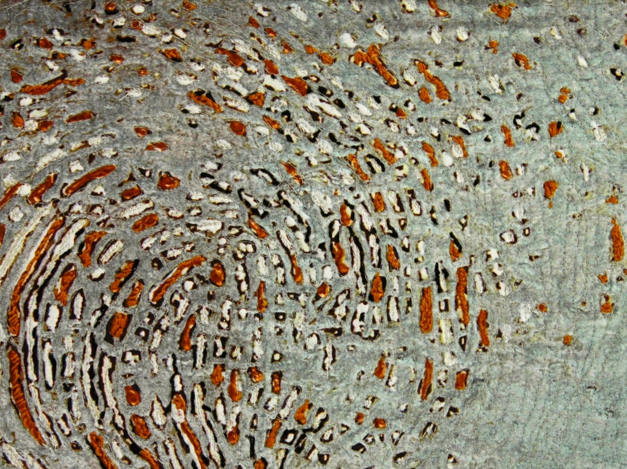 Ik ben een materialen mens, en maak samenvoegingen van verschillende materialen; foto’s, stoffen en borduursels, soms ook gecombineerd met hout, lood en steen, op wisselende formaten