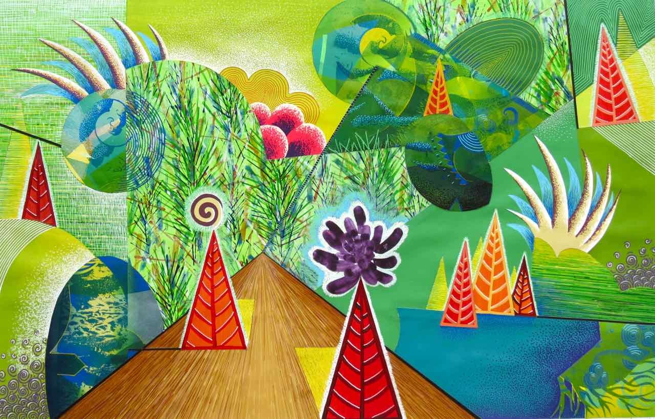 Mijn werk is zeer kleurrijk. Ik balanceer graag op de grens tussen figuratief en abstract, waarbij ik mijn eigen droomwereld creeer. Mijn inspiratie haal ik uit de natuur en het materiaal.