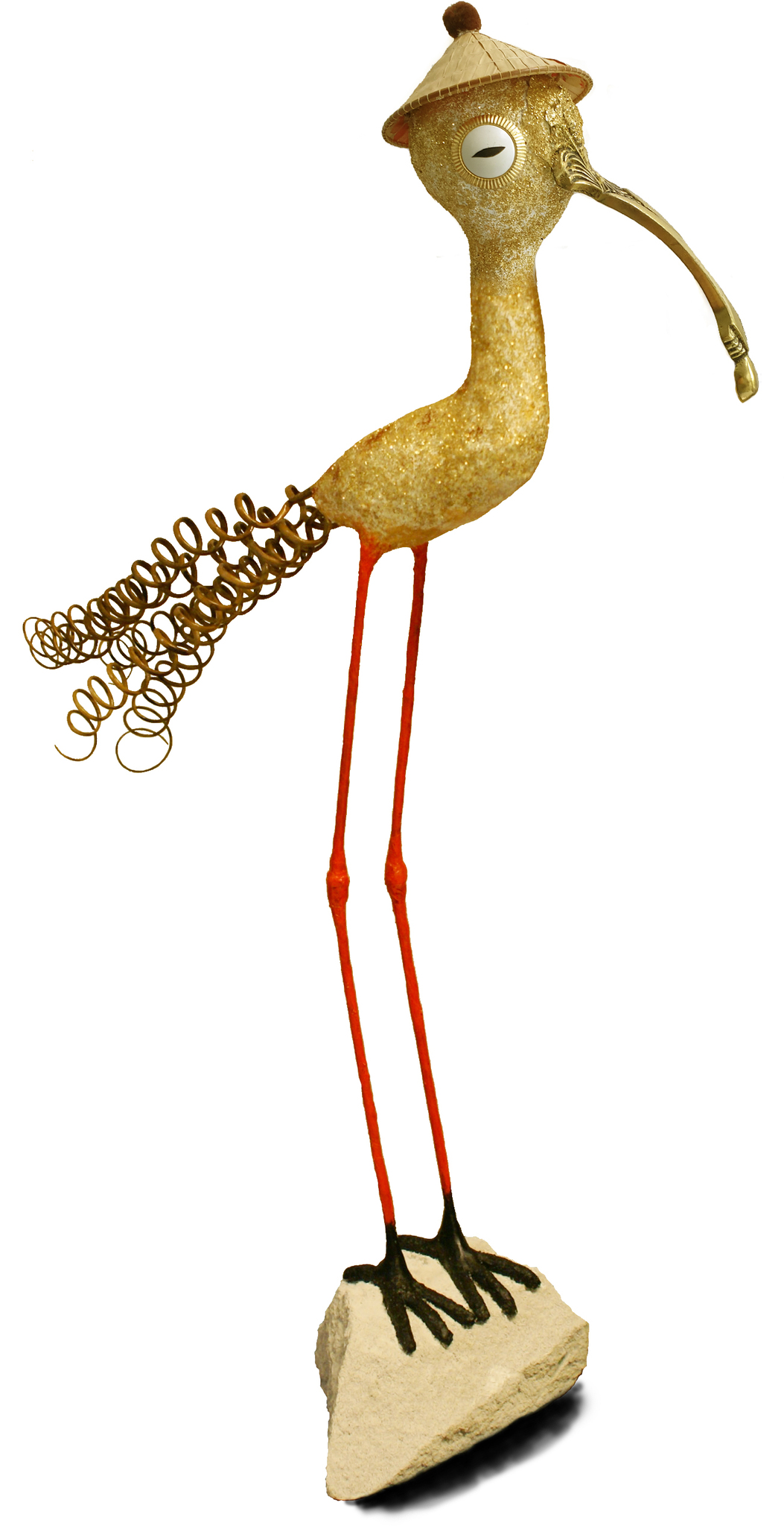 mijn naam is Fred Dessing en ik maak van rest-en afvalproducten én van papier-maché letterlijk heel vreemde vogels. puur uit hobby ben ik hier aan begonnen en heb inmiddels ruim 155 exemplaren vervaardigd en verkocht. ik sta regelmatig op kleine kunstmarkten, voornamelijk in de Randstad waar ik mijn vogels probeer te slijten. het zijn 3 dimensionale vogels, gemiddeld zo'n 70 cm hoog en alleen geschikt om binnenshuis te plaatsen, maar ik heb ook exemplaren gemaakt die bijvoorbeeld in de tuin geplaatst kunnen worden. Hier ben ik mee gestopt omdat de combinatie papier-maché en de tegenwoordige natte omstandigheden buiten niet ideaal was