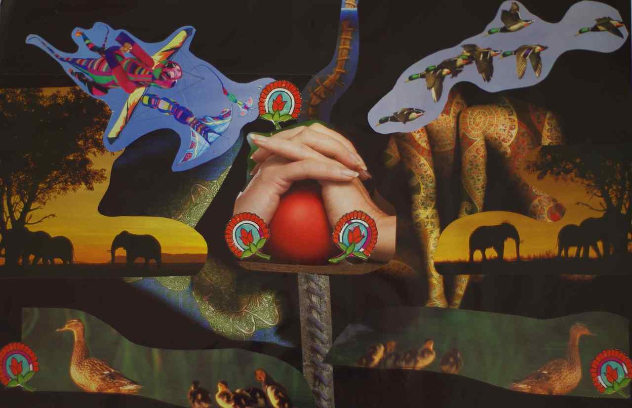 Ik maak papieren collages. Hiervoor gebruik ik tijdschriften, bij voorkeur de meer glossy uitgaven. Ik volg mijn intuïtie en gebruik mijn verstand bij het oplossen van 'problemen' in de verbinding van de papieren onderdelen.
