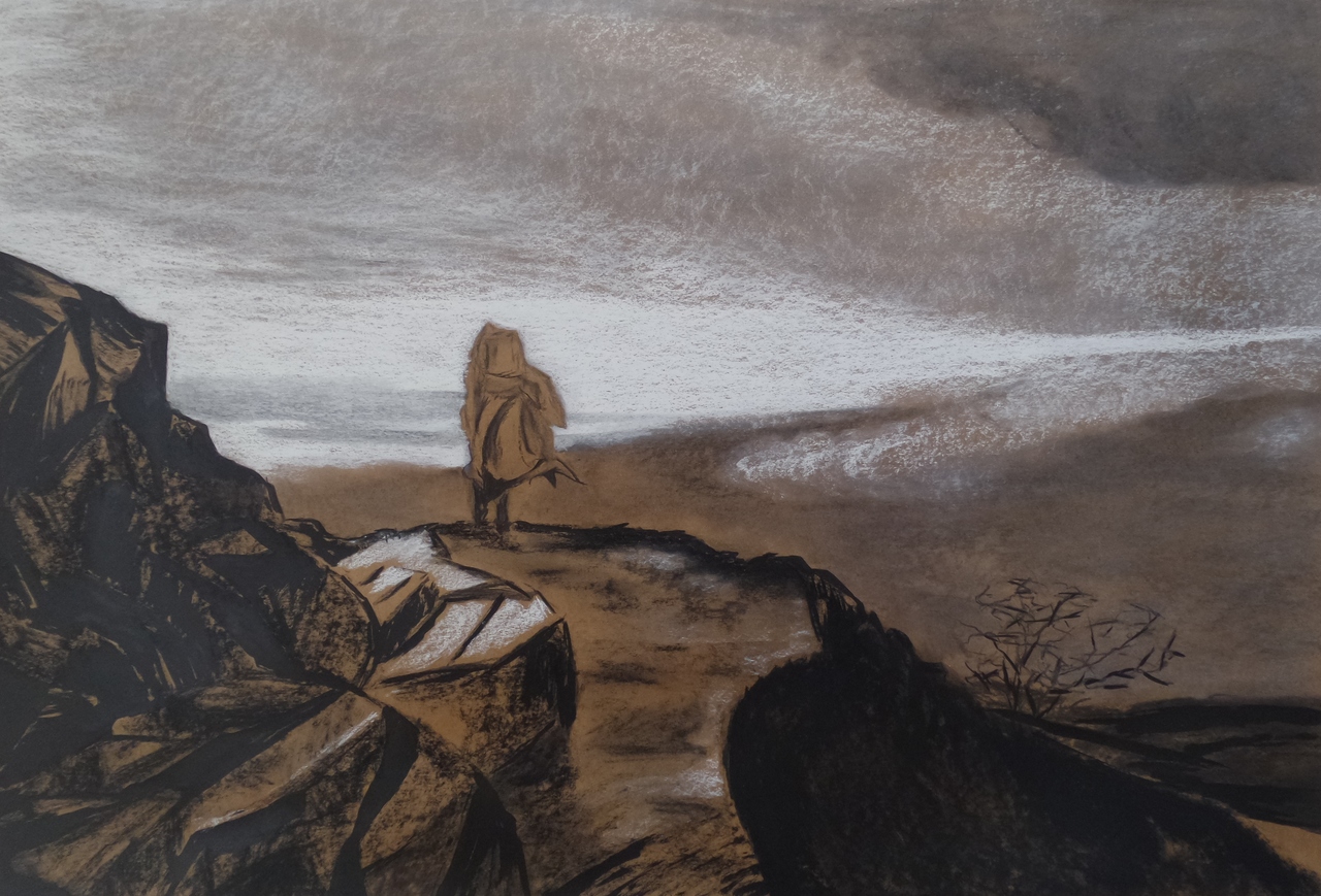 Wit Zwart Indische Figuur Pastel Houtskool Inkt Oost Kraftpapier Bergpas