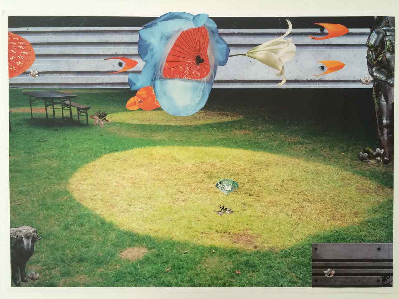Ik maak papieren collages. Hiervoor gebruik ik tijdschriften, bij voorkeur de meer glossy uitgaven. Ik volg mijn intuïtie en gebruik mijn verstand bij het oplossen van 'problemen' in de verbinding van de papieren onderdelen.
