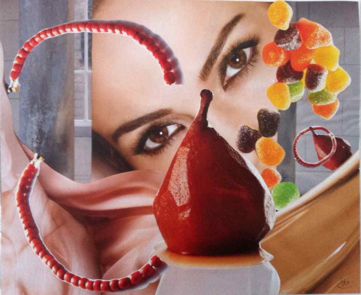 Ik maak papieren collages. Hiervoor gebruik ik tijdschriften, bij voorkeur de meer glossy uitgaven. Ik volg mijn intuïtie en gebruik mijn verstand bij het oplossen van 'problemen' in de verbinding van de papieren onderdelen.