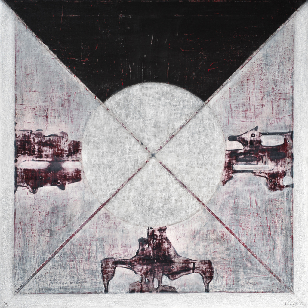Wit Rood Zwart Mixed Media Kunst Schilderkunst Acrylverf 3 Compositie Leven Cirkel Zand Geometrisch Diepte Lijm Gehavend Ontbrekend Windstreken Target Lossevormen