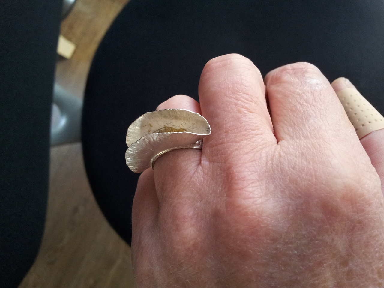Zilverenring, met binnekant goudpedercoating. Maat 18