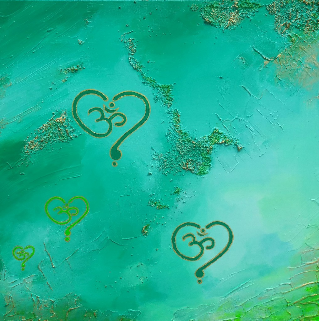 "The swing of things" is het derde werkstuk in een serie van 7 betreffende de hoofdchakra's. Dit kunstwerk symboliseerd middels de regenboogkleur groen het hartchakra.
