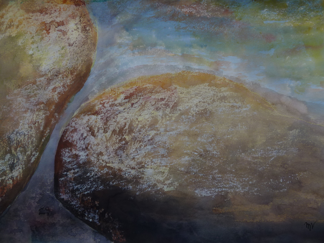 Mijn onderwerpen vind ik zowel in mijzelf als in mijn omgeving. Ik begin te werken vanuit de waarneming en laat deze dan langzamerhand steeds meer los.