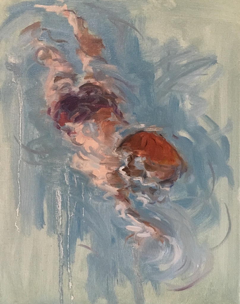 Schilderij Kind Water Olieverf Zwemmen Zwemmer Zwemles