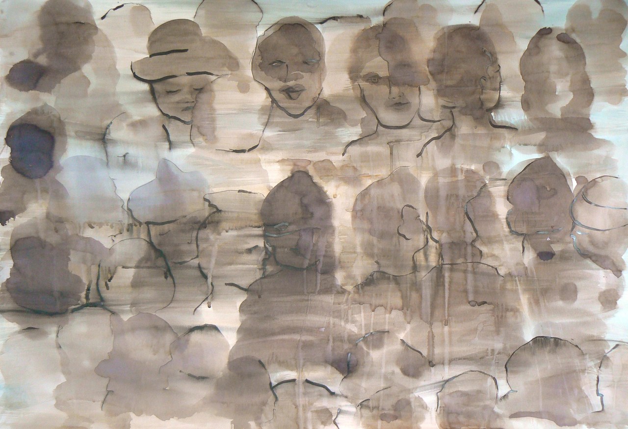 Acryl Gezichten Papier Tekening Acrylic Abstractie Inkt Drawing Fantasie Paper Fantasy Faces Ink