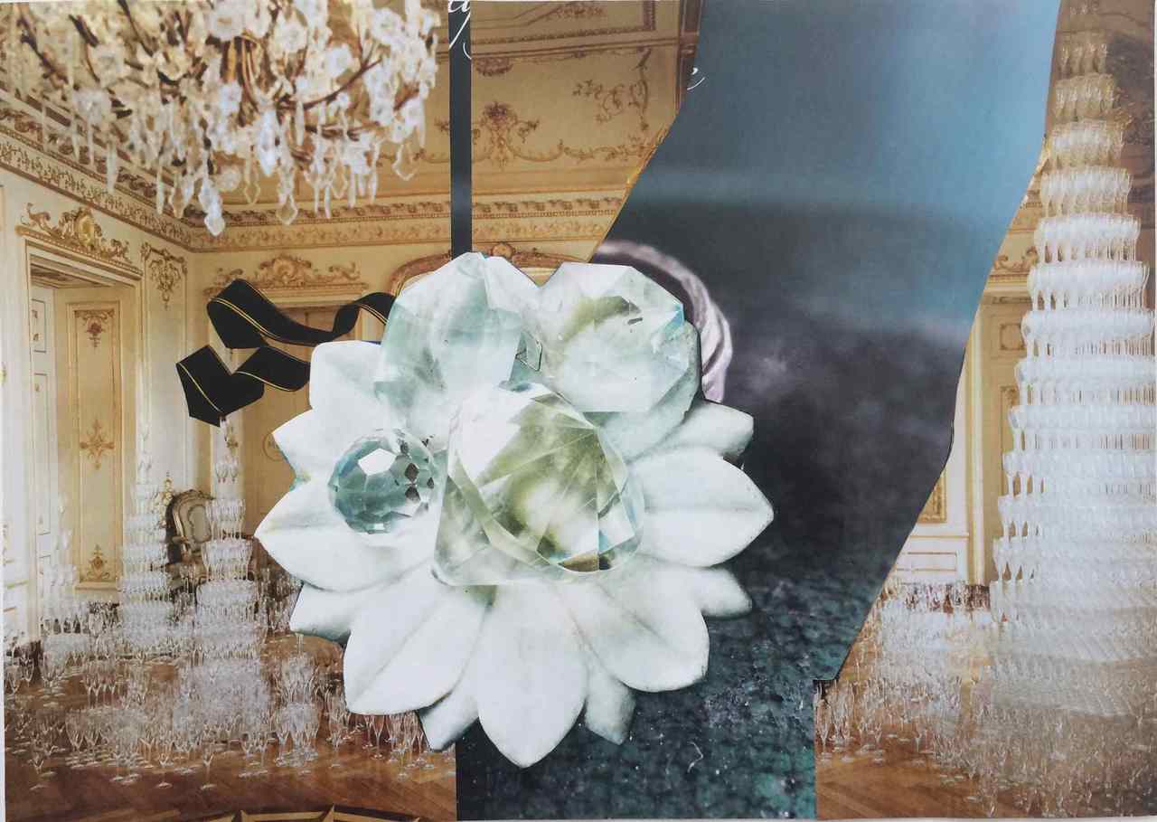 Ik maak papieren collages. Hiervoor gebruik ik tijdschriften, bij voorkeur de meer glossy uitgaven. Ik volg mijn intuïtie en gebruik mijn verstand bij het oplossen van 'problemen' in de verbinding van de papieren onderdelen.