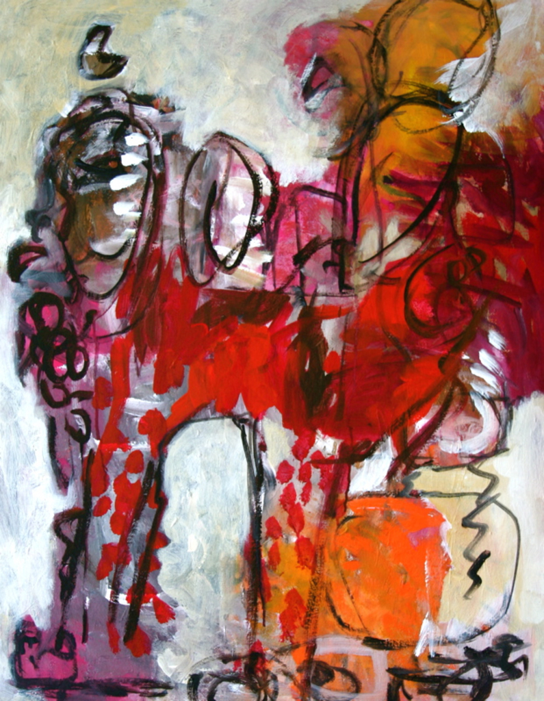 Mijn schilderijen komen tot stand door uit te gaan van een bepaald idee, of een bepaald beeld dat ik voor ogen heb. Soms ga ik alleen uit van bepaalde vormen en kleuren.