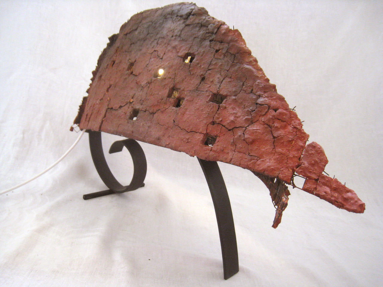 Geometrische en organische keramieke beelden meestal in rakustook technique. 2-dimensionale keramieken en lichtobjecten