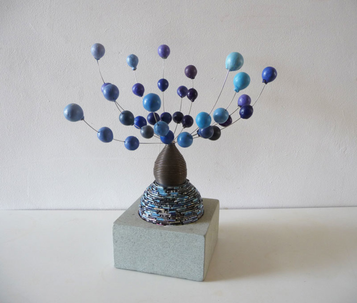 Iets in de buitenwereld intrigeert mij en door deze impressie uit te werken wordt zij blijvend deel van mijn binnenwereld. Laag na laag bouw ik aan de uiteindelijke vorm. Tijdens het werken komt er een stroom van associaties op gang. Het is een constant zoeken naar evenwicht tussen de verf en de andere materialen.