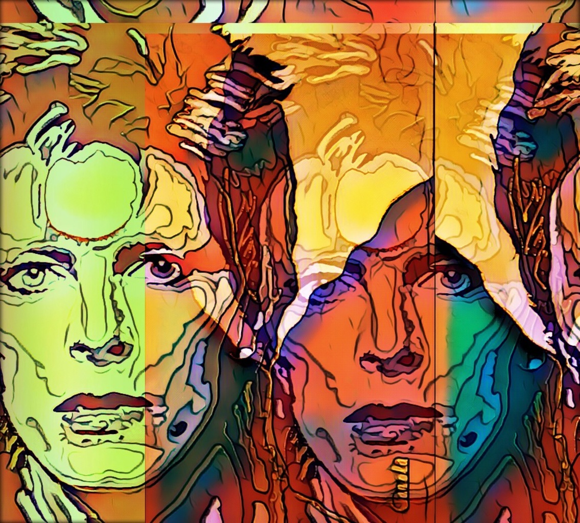 Colorfull Bowie is een digitale bewerking van het schilderij Bowie arrived. Print op Digibond achteraf bewerkt en gesigneerd met verf.