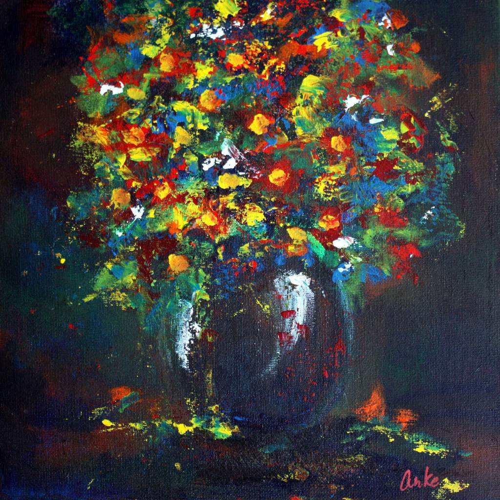Anke (autodidact) schildert voornamelijk met acryl op doek of board. Zij vindt het een spannend proces om al schilderend vanuit een vaag idee te zien hoe het schilderij zich ontwikkelt tot een uitgewerkt geheel. Ze experimenteert graag met vorm en kleur en haalt veel inspiratie uit Afrikaanse beeldhouwkunst. Vaak is de lijst van haar schilderijen verbonden met het werk. Zij gaat ook andere uitdagingen aan zoals het maken van objecten van afvalhout: 'beeldhoutjes', het beschilderen van gebruiksvoorwerpen en het maken van beschilderde houten sieraden. Sinds enige tijd maakt zij ook objecten van keramiek.