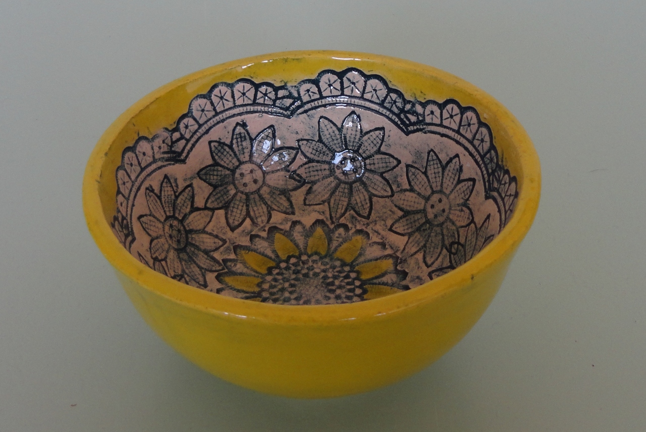 klein rond schaaltje met bloemmotief in reliëf
