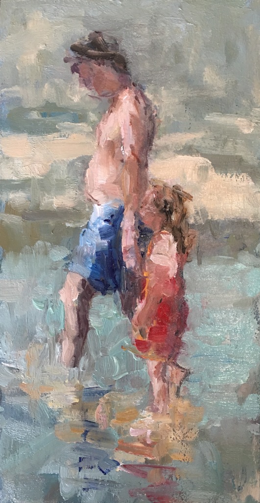 Schilderij Zee Zon Strand Kind Olieverf Vakantie Tafereel Plezier Leven Dagelijks Vader Lief Prinsen Yvonne Gezinsleven