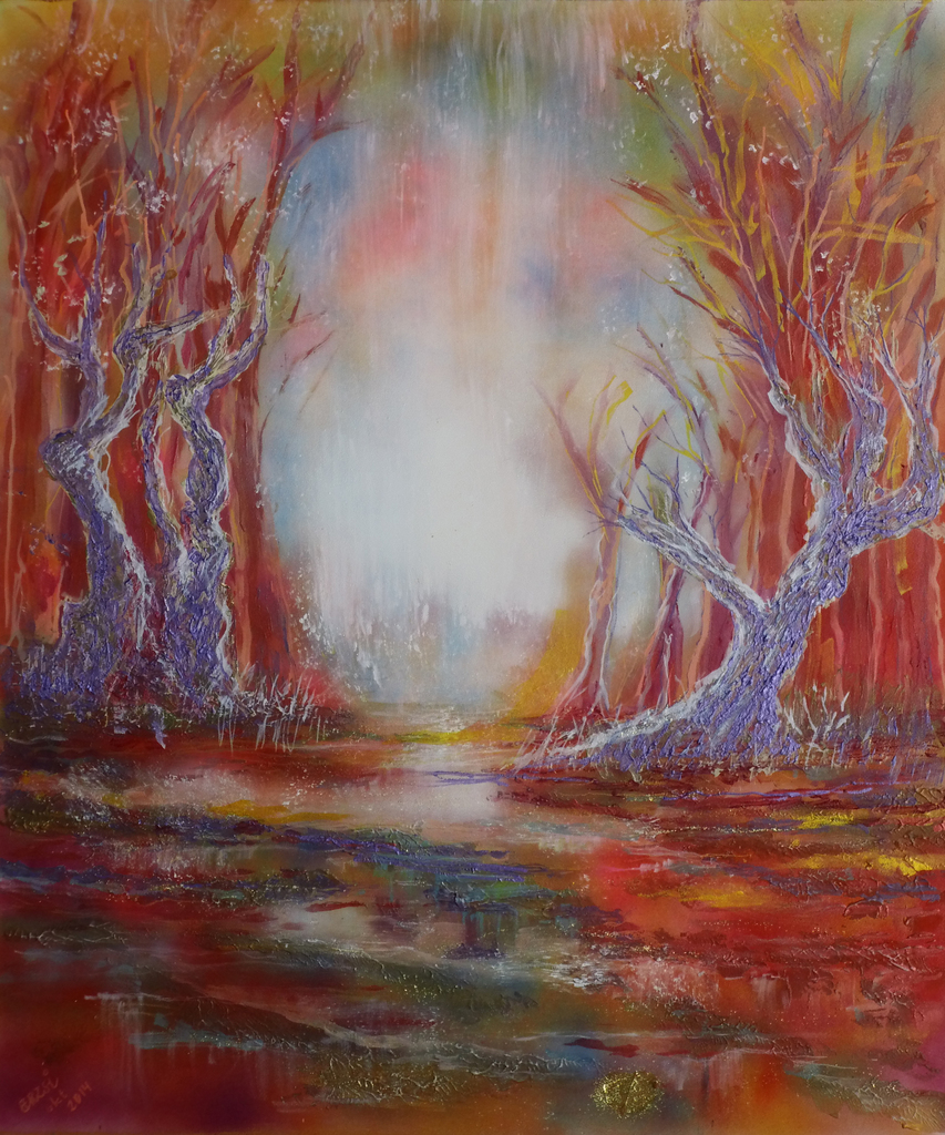 Bij het schilderen is voor mij is de hoofdzaak: heldere kleuren, licht, een verlangen naar schoonheid en vooral VRIJHEID in de vorm van tonen van diepe zieleroerselen en het vangen en vastzetten van alles wat mij raakt.