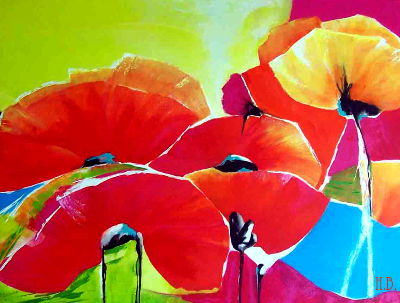 Rood Geel Blauw Groen Klaprozen Kleur