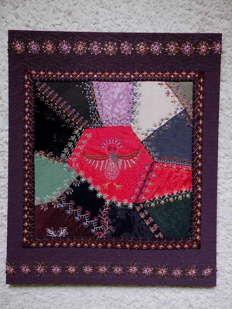 Met veel plezier ontwerp en maak ik mijn crazy quilts, een vorm van patchwork met onregelmatige vormen waarbij de naden bewerkt worden met borduurwerk, eventueel aangevuld met bijvoorbeeld kant, kralen of applicaties.
