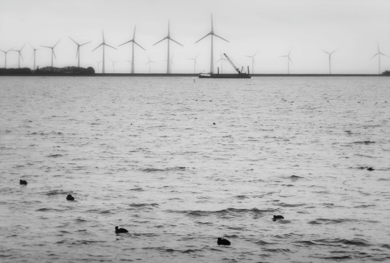 Fotografie Water Vogels Boot Zwartwit Meer Windmolens Meerkoet Ijsselmeer Vvorm