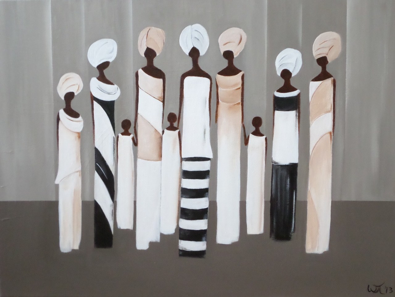 27 Groep Afrikaanse vrouwen met kinderen in aardetinten, geabstraheerd