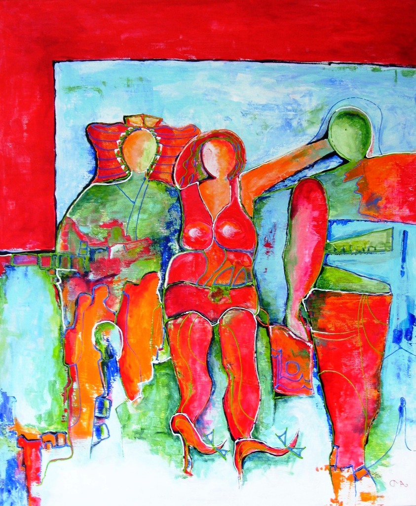 Mijn kleurrijke Acryl schilderijen omschrijf ik als "lyrisch Expressionistisch ". Deze schilderijen ontstaan als een soort dagboeken met een eigen poëtische beeldtaal. Het hoofdthema in mijn schilderijen is het weergeven van menselijke gedaanten in vaag aangeduide landschappen met architectonisch ogende elementen. Ik zie de emotie als een van de belangrijkste elementen van het creatieve vermogen. Wat ik zoek is het geheim van het menselijke bestaan.