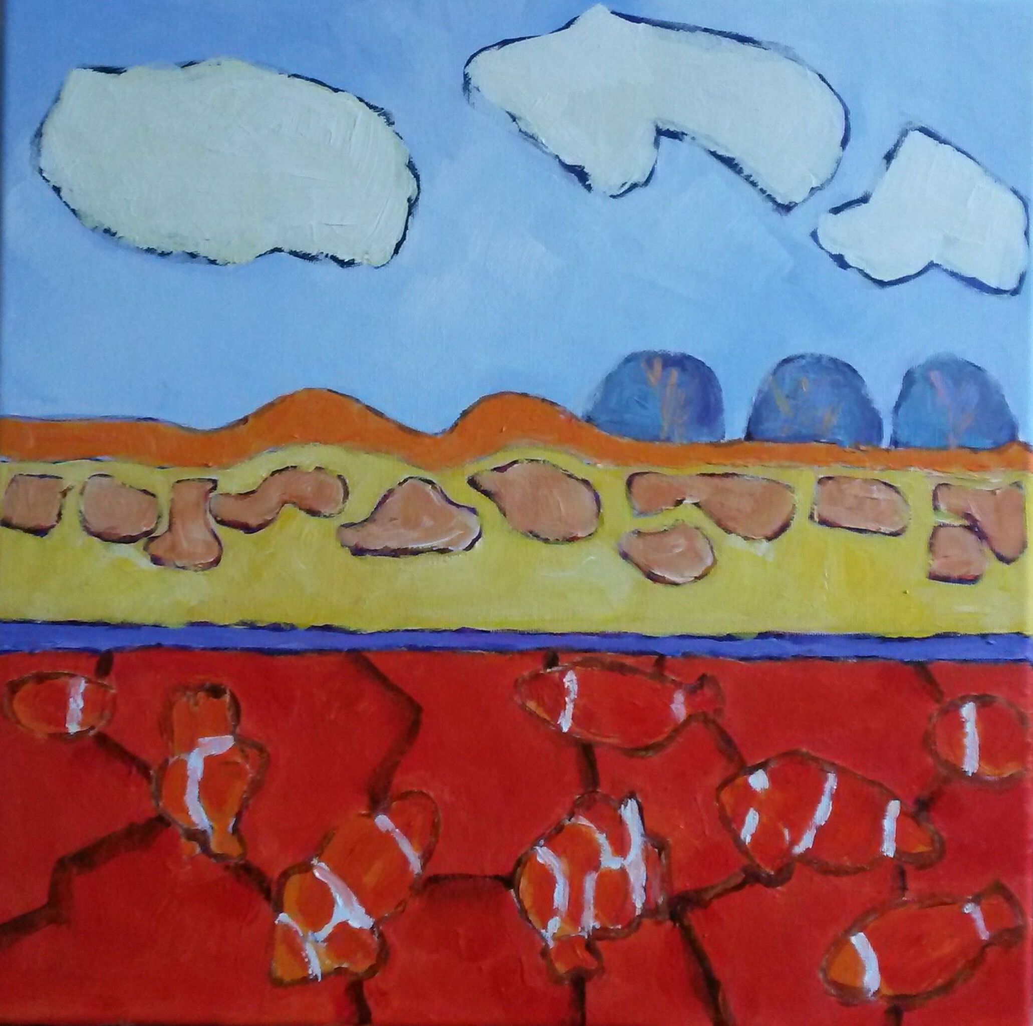 Landschap Acryl Abstraherend Air Vissen Plein Droge