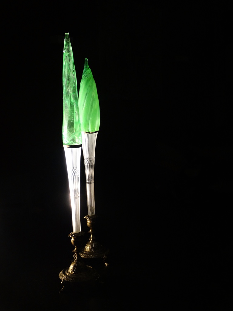 glas geblazen , assemblage met antiek glas