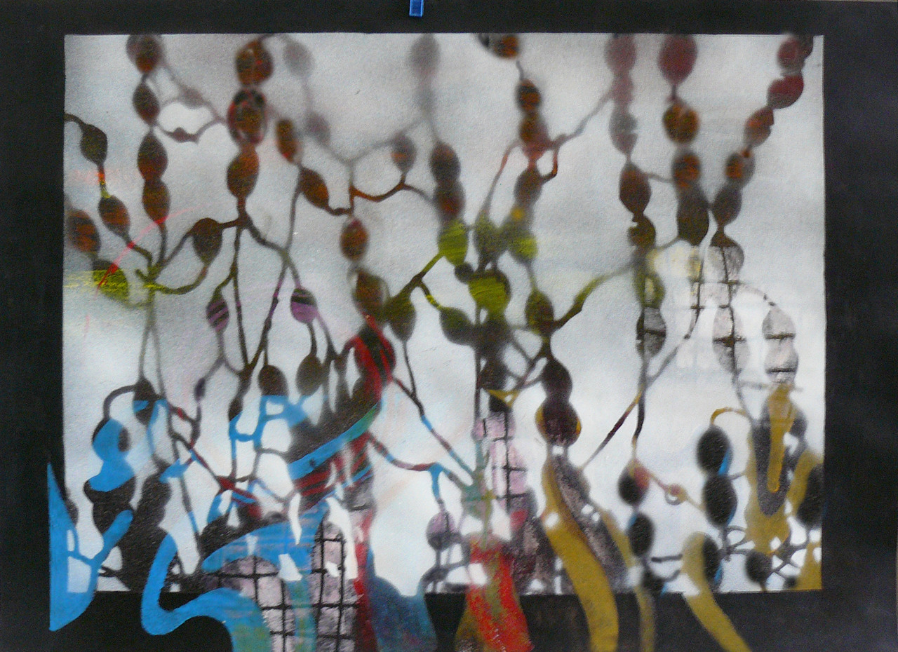 Op papier met acryl en (zelfgemaakte) sjablonen.