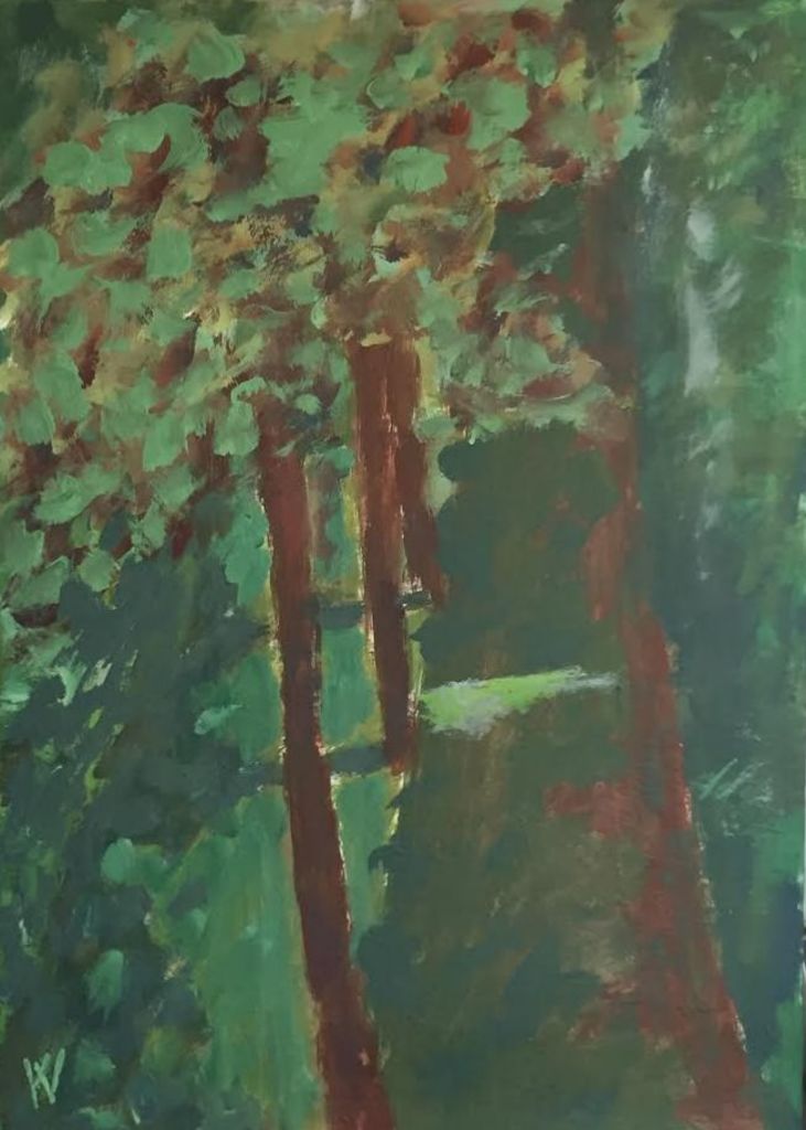 Deel van tuin in DenHout en plain air geschilderd met acryl op paneel 50x70