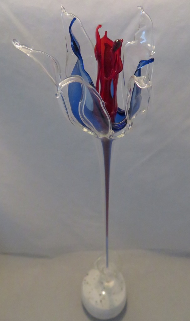 glazen blauw rode bloem