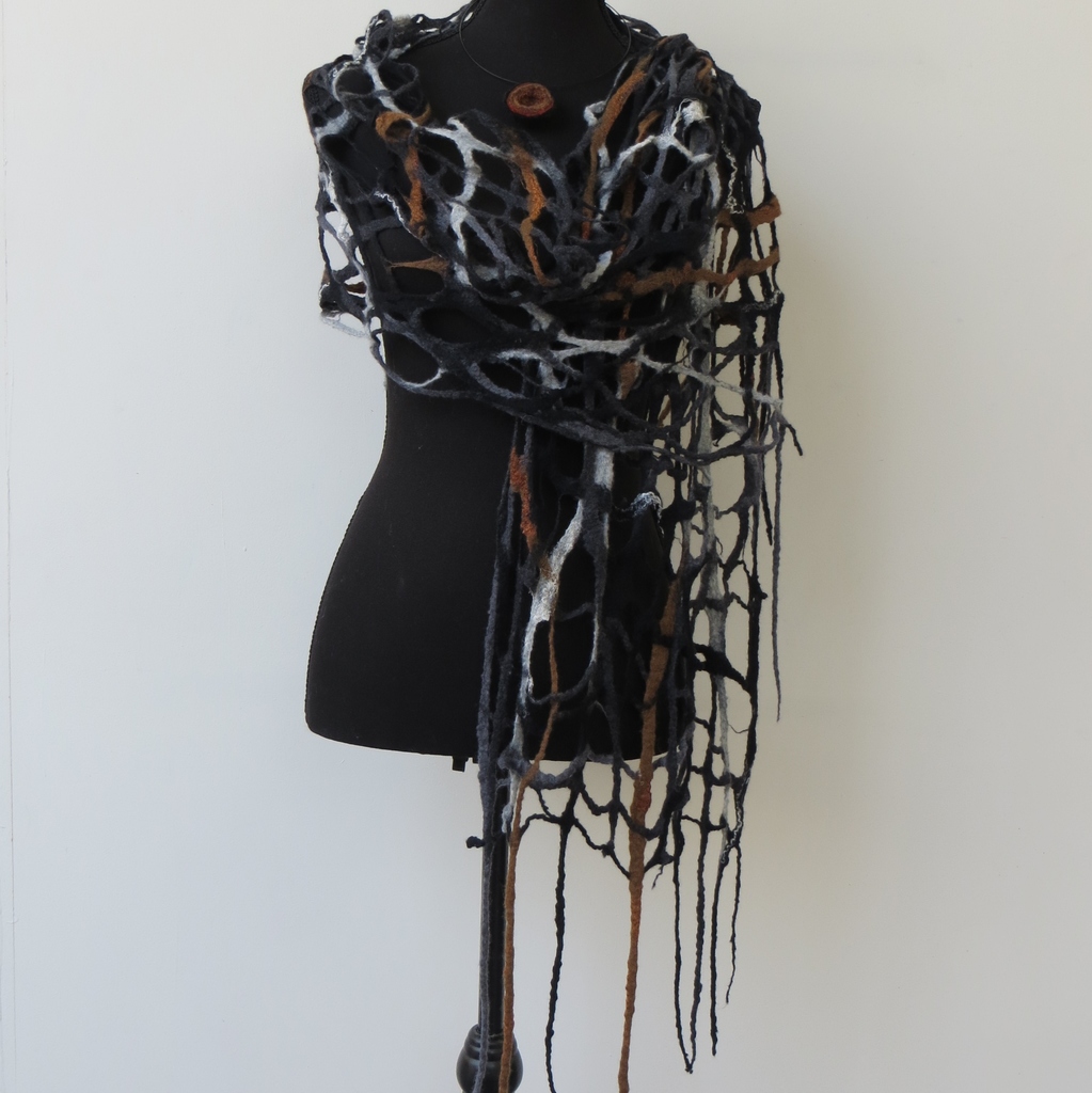 Vilten is mijn passie. Naast schilderijen en objecten van vilt maak ik ook functionele kunst, zoals sieraden, sjaals e.d.