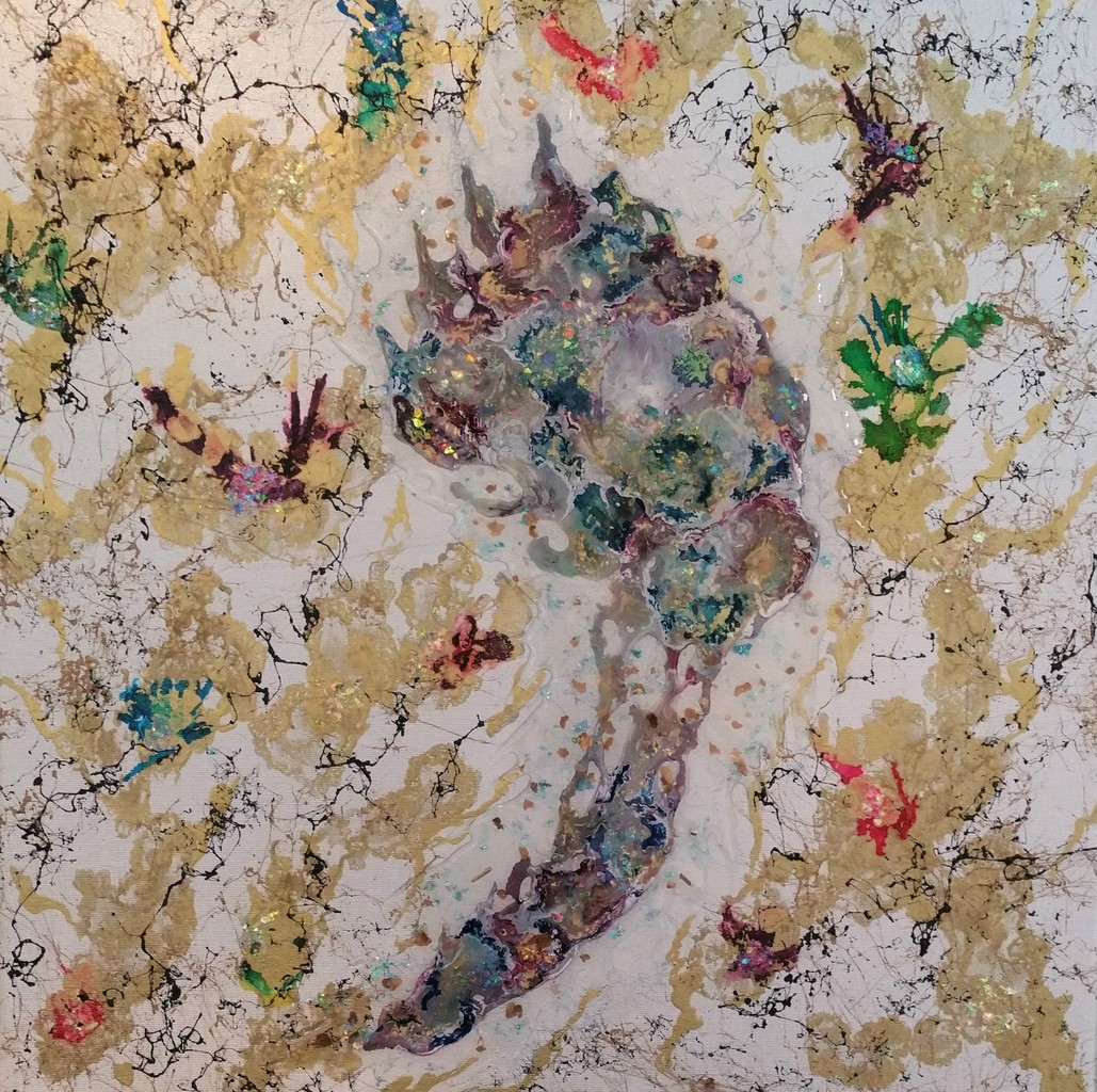 Abstract 7, mixed media, kunsthars en alcohol inkt op doek
