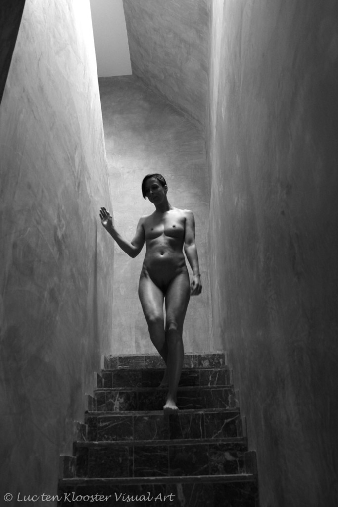 Vrouw Naakt Fotografie Figuur Trap Zwartwit Duchamp