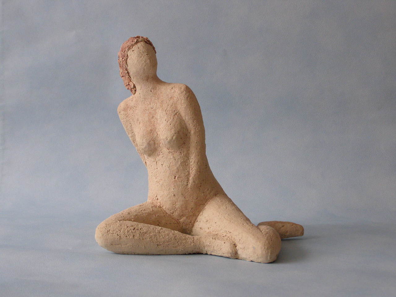 Dit beeld is gemaakt naar levend model. Gemaakt van witte steengoedklei, bewerkt met ijzeroxde en gebakken op 1230 °C