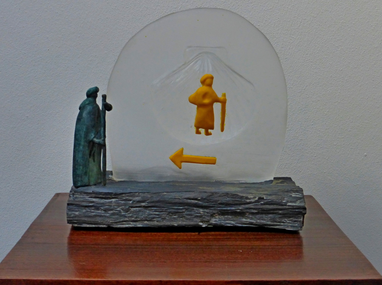 Glas gemaakt vlg. de sandcastingtechniek en het brons vlg. de verloren wastechniek. Voet van hardsteen.