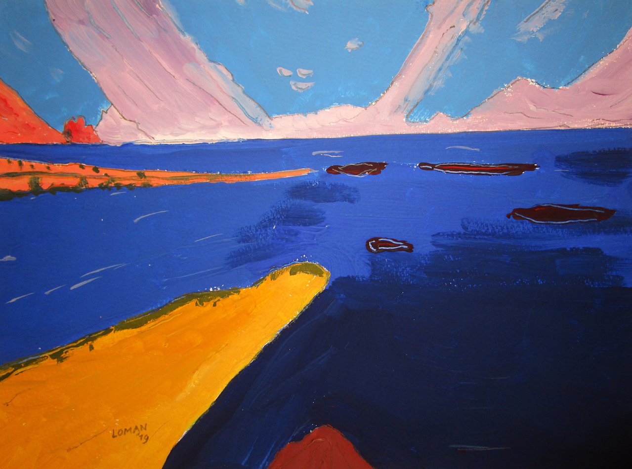 Karel Loman schildert expressief. Zijn landschappen en stads- en dorpsgezichten zet hij in heldere kleuren op papier. De sfeer van het landschap staat bij hem voorop. Loman werkt voornamelijk met temperaverf, aangevuld met inkt of potlood.